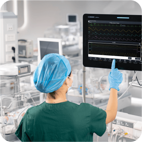 - Intuitive SpO₇ monitoring interface designed for newborns measurement.